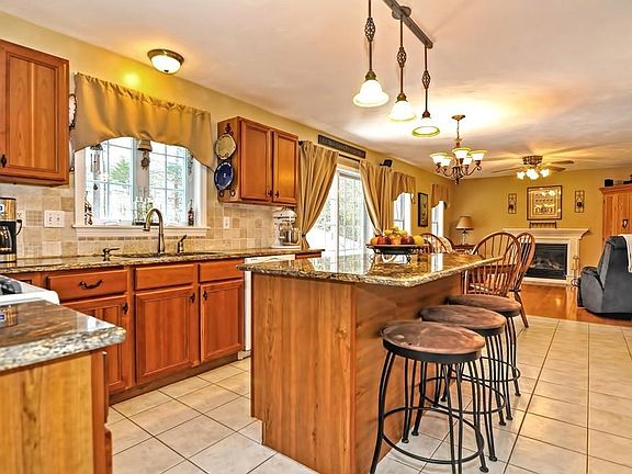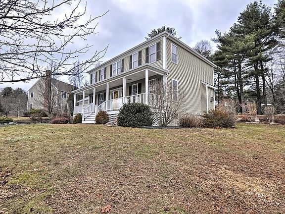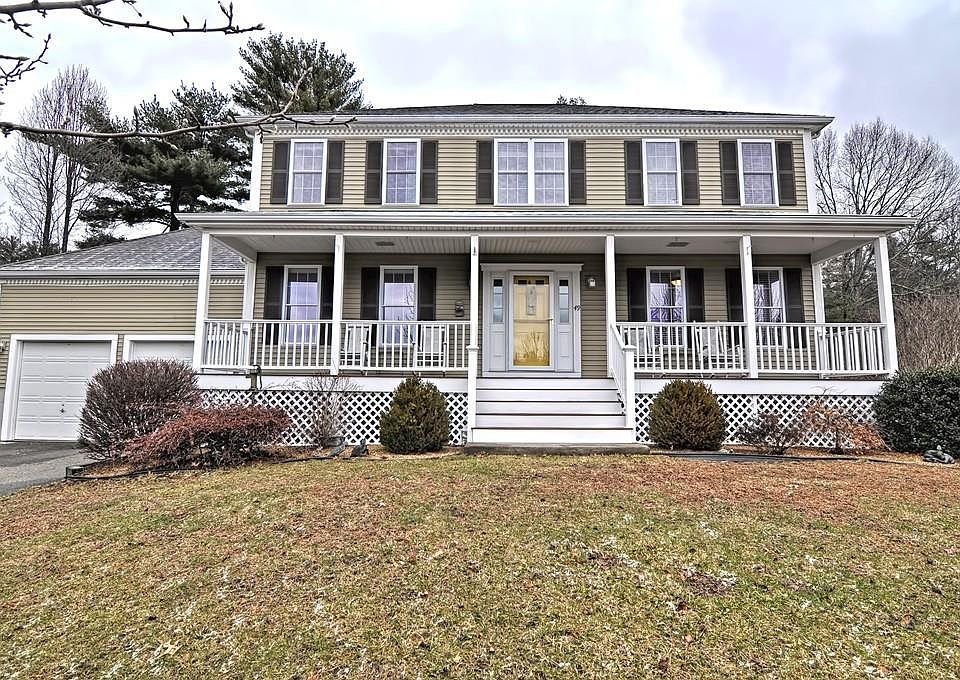 This meticulously maintained 4 bed, 2.5 bath Colonial with charming farmer's porch is situated in the desirable cul-de-sac neighborhood of Buck Hill Estates. Eat-in tiled kitchen with gorgeous granite countertops, ample cabinet space, and island connects seamlessly with open concept family room featuring natural gas fireplace. Walk out kitchen slider to 22x18 deck with outdoor Jacuzzi overlooking lush backyard oasis with riverstone patio. Double sliding barn door in wainscoted front foyer leads to family room. Dining room and half bath with laundry complete the first floor. Walk up front stairs to explore master bedroom with walk-in closet and double-vanity master bath, three spacious bedrooms & second double-vanity bath. This home boasts new hardwoods throughout most of the living space, new tankless high efficiency Navien water heater, town water/sewer. Enjoy many close amenities including the abutting Franklin State Forest and trails, commuter rail, and easy access to highway.