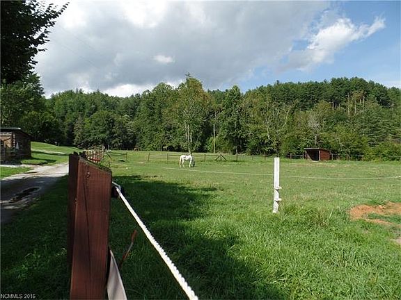 Bring your horses to this mini horse farm located 12 miles from Brevard with 4.77 acres. Features a 3 stall horse barn w/heated tack room & covered area for hay. Features a 132x66 ft horse arena w/level pasture w/ solar powered fence & also borders a creek! Small heated green house, trailer cover, workshop. Small portion of lower pasture is in 100 yr flood plain. Neighbors have d/way ROW. Includes PIN 8532-99-3862-000. Nice home sold "as is". Addition made at some point. Minutes from Hwy 64.