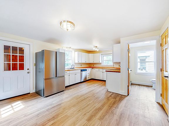 Spacious 4 bedroom, 2.5 bath cape in historic Thomaston features all new everything, including updated pluming and electrical! Adorable curbside appeal surprises with generously-sized, eat-in kitchen with custom cabinetry, butcher block countertops and stainless appliances. Primary first floor bedroom is en suite with double closets. Upstairs, another full bath services 3 spacious bedrooms. attached barn offers a mudroom for boots, coats and gardening tools, while the barn offers storage and additional creative space. Private backyard and easy access to town amenities and very short drive to Rockland. **Owner willing to consider rent-to-own entertaining rent-to-own financing with acceptable terms**
