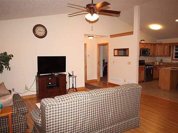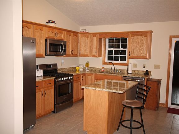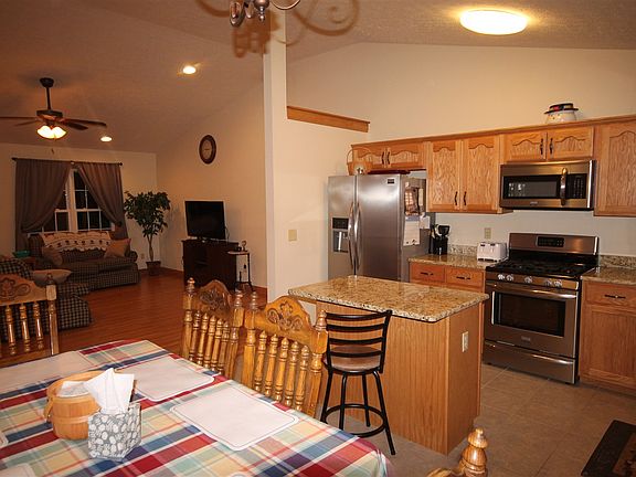 This beautiful custom built three bedroom, three bathroom ranch home, built by one of Hardin County's premier builders, is situated on a large lot on a cul-de-sac. The open floor plan features laminate floors, granite counter tops, tiled floors in kitchen and bathrooms, all trimmed with classic oak. The third bathroom has a completely tiled shower. The home also has two large stone patios, the upper patio is plumbed for gas while the lower provides afternoon shade. The convenient floor plan will accommodate gas or electric for the stove and dryer, with the laundry room being right off the master bedroom. The oversized 25ft by 35ft garage will give you plenty room for storage or a work shop.