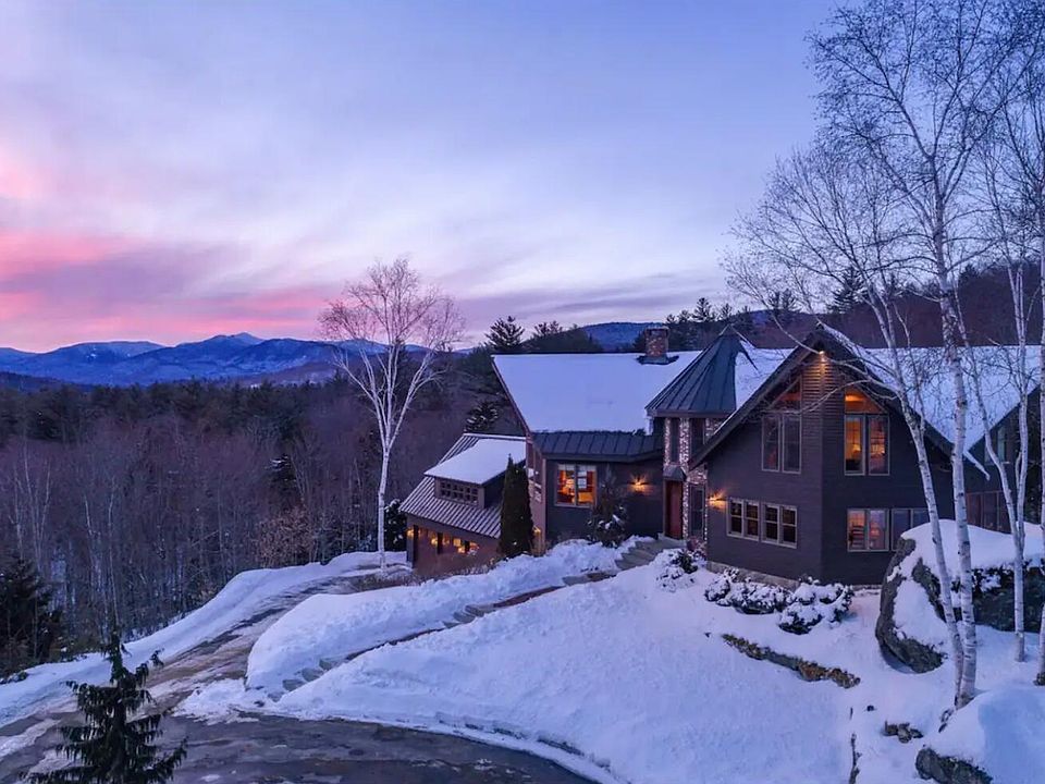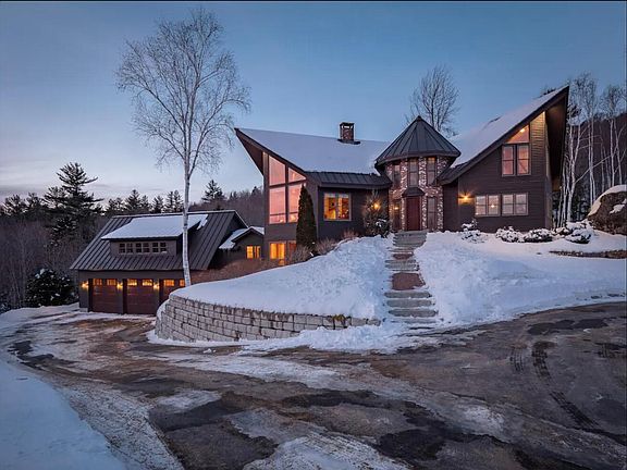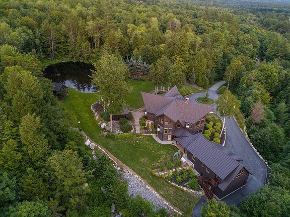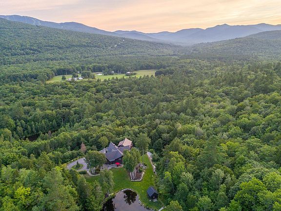 Lovingly referred to as, THE MANSION, this property elevates off of a high knoll on 5 private acres overlooking Sunday River and the Mahoosuc Mountain range. The sprawling 4.4 acres consists of meticulously landscaped lawns, mature perennial garden beds with gorgeous blooms in every season, unique hard-scape, a picturesque pond, and abundant outdoor living space. It's impossible to capture the splendor of this mountain retreat without standing in its glory. The most recent addition by the former owners, is an impressive three bay garage with 1200 sq. ft. of unfinished living space above the garage. It can be customized to the next owners desires. Upon entering you will find that the floor to ceiling windows create a cozy sun drenched feel. Additionally, the cathedral ceilings, uniquely designed staircase around a brick turret and centered fireplace highlight the angles of the custom built home beautifully. The property boasts 5 spacious bedrooms and a bathroom on each floor. The large master suite is on the main level adjacent to a spacious kitchen with ample room for seating. This property features a formal dining room, a pub bar in the brick turret, a billiard room, game room, family room, media room and so much more. Currently a successful rental property. Listing photos do not match the contents of the non-fixed items in the house as they were taken prior to home being listed.