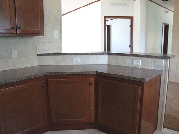 This spacious three-bedroom/two bath home has a living room and family room, formal dining room, beautiful kitchen complete with eat-in counter and appliances, two decks, a shed and A/C. Lot rent is $454/month and includes water, sewer and trash.