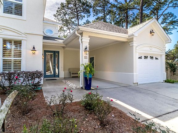 This well-kept, lovely 4-bedroom, 3 bath home has a warm, airy feel the moment you enter the home. The upgraded kitchen flows nicely to the living room and dining area with a large outdoor patio just outside - adjacent a wooded common area, creating a quiet, charming oasis. First floor master bedroom and bath along with an additional bedroom or office and laundry area round out the first floor. Upstairs are 2 guest bedrooms and an open deck with a peak view of Oyster Lake. One car garage and covered carport with nice concrete driveway provide plenty of parking and storage. Fairway Villas is a highly coveted 30A west end neighborhood off Allen Loop located adjacent Santa Rosa Golf & Beach Club. Perfect for a primary residence or second home you will have a very short walk to the beach