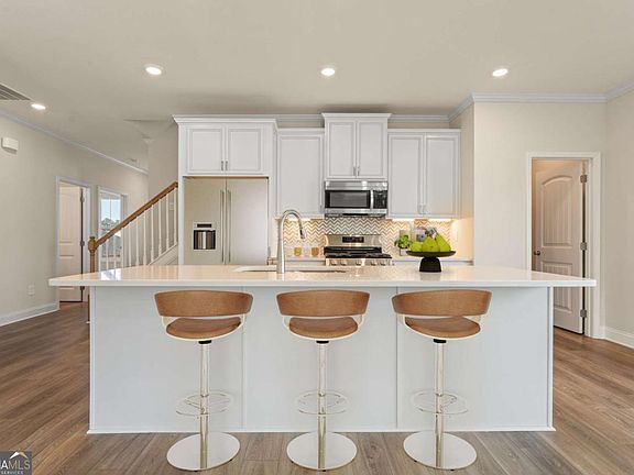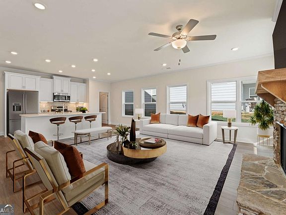 New Lower Price! Savor mornings on your covered patio, afternoons by the pool, and evenings with friends at the clubhouse - that's life at Heritage Pointe. This private gated golf course community in West Paulding sits along the award-winning Frog and offers lush scenery, small-town charm, and full access to all The Georgian amenities, including a waterpark, tennis courts, walking trails, playgrounds, and green spaces. Low-maintenance lifestyle as HOA handles lawn maintenance means more time to explore Villa Rica's vineyards, parks, and historic gold mines, with Atlanta just an hour away. Move-in ready now, 49 Masters Drive features the Rabun A plan with 3 bedrooms, 3 baths, and stylish upgrades throughout. The heart of the home is the open-concept kitchen, perfect for entertaining. It boasts crisp white cabinets, elegant Carrara Breve Quartz countertops, a stylish tile backsplash, and top-of-the-line stainless steel appliances. Thoughtful details like under-cabinet lighting add a warm, inviting glow. The owner's suite includes a coffered ceiling, private patio access, two walk-in closets, and a spa bath with Arctic White Quartz, a tiled stepless entry shower with bench, and dual vanities. Upstairs, a large loft, bonus bedroom & bath offers space for guests or game night. Luxury Vinyl Plank flooring flows through the main living areas for style and durability. The 12x20 covered patio is perfect for entertaining or relaxing, and a two-car garage with storage keeps essentials organized. Schedule your tour today before this showcase is gone.