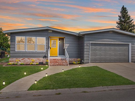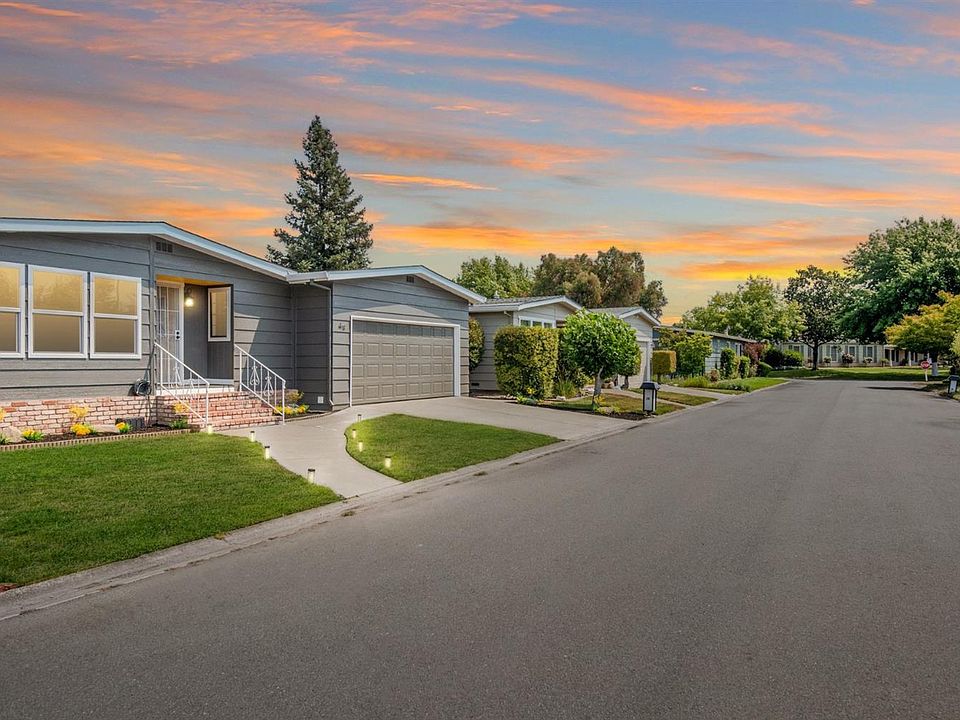 Exceptional, clean, upgraded, turn key mfg/mobile home in The Orchard 55+age park. Enjoy spacious 1,344 sqft. living, lots of natural light, 2 bd/2baths/ open floor plan w/ a back utility room. Fully landscaped, auto sprinklers, w/private patio & backyard. Attached 2 car garage. Numerous improvements.Gorgeous laminate wood flooring w/ wide baseboards in open rooms & kitchen. Just prof. painted modern exterior & kitchen throughout +garage. Replaced 5 windows/double pane. 5 new mini blinds white to mahogany. New mirror slider closet doors in guest bdrm. Walk in closet main bdrm. New shower heads & valves, new toilet. Fridge conveys w/sale & gas stove, dish washer, disposal, pantry closet, double sinks. Newer Water heater &clean roof rpts 2018.Clean Pest rpt. 6/21. (Must qualify for park approval but only after acceptance of offer. Pets allowed. Size, # limit. Utilities extra.) Super location. 1 block to club house, pool, hot tub, tennis & stunning sunsets await the lucky new owner! 2021-09-05