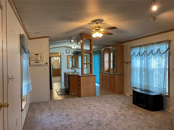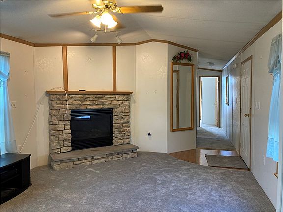 Opportunity to own a charming home, 1064 Sq. Ft.in Lima, Open Concept Living Room with Gas Fireplace, New Carpet, Eat-in Kitchen with 2 tier-island & beautiful cabinets, All Appliances included. Laundry, Primary Suite with Dual Closets, Attached Bath with Garden Tub and Shower, Other end of home has 2 bedrooms and 1 full bath. All Season Room with Sliding Glass Door to Patio. House has A/C. Designated Driveway, Shed and additional storage smaller shed. Home located in a Well-maintained Park, Meadowlark Manor. Home on back lot facing countryside view. Lot Rent $430.00. Lot Rent includes Taxes, Water & Sewer, refuse & recycling Removal & Snow Removal. MOBILE HOME MAY NOT BE REMOVED FROM LOT.