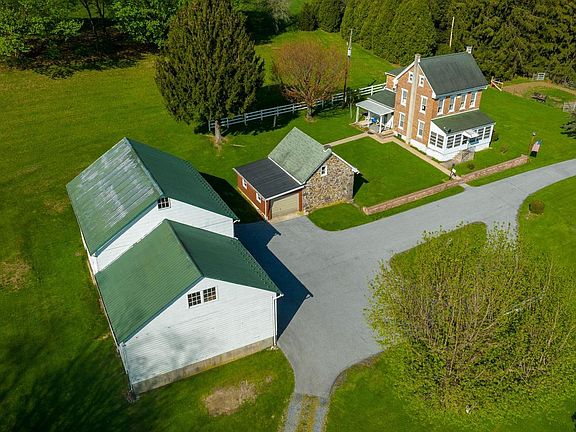 Welcome to 49 Meeting House Lane in Oley Township. History abounds on this Oley Valley Schools homestead tucked away on 31 plus beautiful acres just off the historic Main Street in the "Valley". The stone house was constructed in the mid 1700's and served as a summer home for 2 school teachers. In 1883 the main house was built by Susan and Mahlon Deturk. History says this property had a canal originating on the northeast corner serving the onsite tannery. Today the water features include a babbling stream and a stocked spring fed one acre pond both in view from your enclosed 3 season front porch seat. Enter through the side laundry/mudroom with a powder room to your right into your sure to please full eat-in oak kitchen with propane range oven. Formal living room and dining room both with hardwoods completes the main level. Take the stairs to the 3 generous sized bedrooms and the full tub shower hall bath. Finished attic would make a nice bedroom 4 or in home office , just add heat and cooling. Plenty of outbuildings are ready to serve your livestock needs including a 3 story 36' x 33' barn with a current design layout for 6 horse stalls and a 33' x 24' attached wagon shed. Other outbuildings include a 25' x 40' steel equipment building, 28' x 16' sheep shed, 24' x 16' steer shed, 8' x 10 ' chicken coop and a small utility and wood shed. Don't forget to take a peak at the 2 story 22' x 22' original stone house with an attached 22' x 12' one bay garage. The land break down per the agrarian report is farmstead 1 acre, pond 1 acre, pasture and tillable 18 acres and 12 acres of woodland to the rear. If you're looking for a historic farmette with all the "I wants" then look no further! This is the one... Schedule your tour today! Oh and if thats not enough you are just steps away on the southwest corner to the adjoining Oley Fairgrounds home to a slew of community events including the almost world famous Oley Fair getting ready to celebrate it's 75th anniversary this fall!