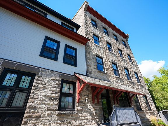Welcome to 49 Mill Street Suite 6, an extraordinary Penthouse condominium set within the historic Boulton Brown Mill, one of Carleton Places most cherished heritage landmarks. Perfectly positioned in the heart of downtown, this home blends character, comfort, and an unbeatable riverside setting.Step inside to discover a bright and spacious open-concept living and dining area, highlighted by exposed stone walls, soaring 9-foot ceilings, and oversized windows that fill the space with natural light. The kitchen offers excellent functionality with generous cabinetry, a walk-in pantry/storage room, and convenient in-suite laundry, while a stylish 2-piece powder room is perfect for guests. Upstairs, youll find two generously sized bedrooms and a full 4-piece bathroom. The primary bedroom is a true retreat with its private waterfront balcony, where you can unwind while enjoying unobstructed views of the Mississippi River a peaceful backdrop of nature right at your doorstep. This sought-after location gives you the best of both worlds: steps to boutique shops, cafés, and restaurants in vibrant downtown Carleton Place, yet surrounded by scenic walking paths and the tranquility of the river. One parking space and a separate storage unit are included for your convenience. Experience heritage charm, modern comfort, and waterfront living all in one.