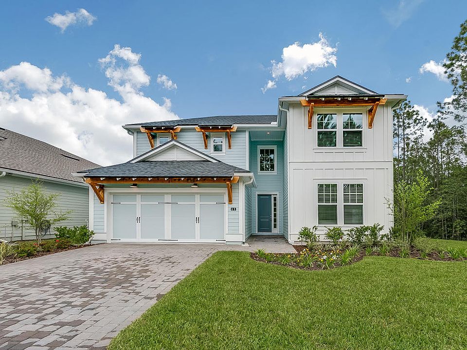 Come see our Mandigo Coastal home design all situated on a beautiful deep home site backed up to a preserve located in Toll Brothers Newest home community Julington Lakes located in ST Johns County. offers a fresh, coastal and modern open architecture in a beautifully designed gated community. Amenities will include the gated entry, residents clubhouse, fitness center with yoga room, canoe-kayak launch next to an open air pavilion with wood burning fireplace, pool with designated lap lanes, tennis and basketball courts along with a multi-purpose field, many parks and walking paths and a boardwalk entry directly into nearby Veterans park. come see our furnished model homes and why there is so much excitement happening in Julington Lakes by Toll Brothers.
