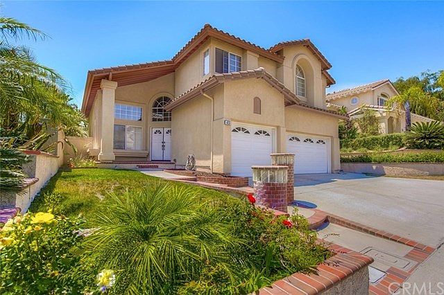 Fantastic Catalina, city lights & romantic sunset views!! Don't miss this opportunity to live in the wonderful hillside community of Foothill Ranch. Sellers have priced this Mediterranean charmer to SELL FAST!! Home boasts new carpet and new paint, 4 spacious bedrooms, 2.5 baths and 2,350 sq. ft of comfortable living space for everyone. You'll be impressed with the professionally hardscaped brick pilasters, planters, and walkway leading up the seating porch and double door entry. Inviting foyer greets you and your guests with soaring two-story ceilings, sweeping staircase, and loads of windows accent the light-filled formal living room and dining room. The sunny west-facing kitchen includes gorgeous granite counter tops, garden window, gas stove with vented hood, trash compactor, microwave, double oven, pantry, breakfast bar, and breakfast nook. The roomy family room has a gas fireplace and wet bar. Convenient downstairs laundry room. You'll love the oversized master suite boasting private deck with amazing views, vaulted ceilings, two walk-in closets, granite vanity, soaking tub, and separate shower. The upstairs secondary bedrooms are extremely large and features high ceilings. The large, private backyard features stone-accented patio area surrounded by raised planters and is an empty canvas with endless possibilities. Walking distance to award-winning school. Hurry on this one!!