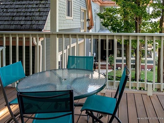 This bright spacious in-town 2+ bedroom, 2 full bath East End condo boasts high ceilings and maple floors. Enjoy water views of Casco Bay from your back deck and many rooms. A welcoming front entry foyer leads to a living room with grand windows and a decorative fireplace adjacent to the dining room with built-ins. The master suite offers a dressing room adjacent to a full bath and the second bedroom has a walk-in closet. There is abundant storage throughout. The kitchen has cabinets galore and features a gas stove for the chef and generous counter space for the guests. Many period details are preserved including a claw foot tub, built-ins, vintage trim and stained glass, while also offering modern conveniences of one-floor living and a separate mud and laundry room. Great condo with a stellar location on the hot East End scene near the beach, walking trails, shops, and restaurants. The fireplace is not operable for wood burning. Current dining room could be 3rd bedroom.
