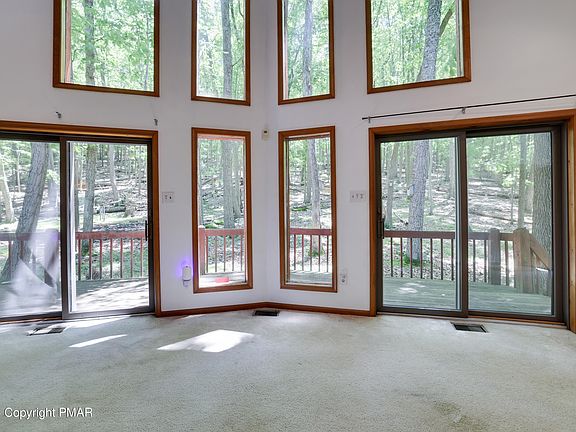 Do Not Wait to See This Fantastic Mountain Chalet Backing to Private Hillside in Sought-After Eagle Rock! This is an opportunity to get into this fantastic amenity-filled community on the lowest-priced property currently available for sale! Around the corner from the beach, lake and golf-course for summer fun and around the corner from ski hill for winter sports, enjoy living like you're on vacation year round! The community is ultra-conveniently located off Route 81 providing easy access to The Poconos, Scranton, Wilkes Barre and Philadelphia, be convenient to all yet a world away. The property is the ideal reverse-style with a wall of glass windows and sliders facing the rear deck nestled into the private backyard. Function marries style with full walkout basement and garage. Sun porch is the perfect area to relax and dine on those warm summer nights and wood-burning fireplace provides cozy ambiance in all seasons. Three spacious bedrooms plus loft offer plenty of room for everyone. Great features like central air/heat, whirlpool tub and skylights for a light-and-bright living space full of sunshine. Nothing Like This At This Price - Do Not Delay - Schedule Your Private Tour Today!