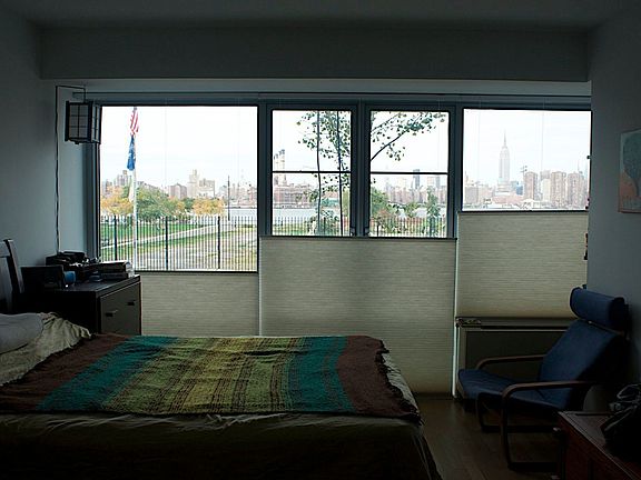 1 bedroom condo on the Williamsburg waterfront. This is an amazing place to live - the condo itself is roomy and comfortable with a beautiful view, and the neighborhood has outstanding restaurants and bars. The Bedford L stop is four blocks (<5 min walk) from the apartment and we're only one stop from Manhattan (15 minutes from our door to union square). <p> The building is NOT one of the highrise buildings - it is a 6 story building with 40 units (built in 2008). We have a great super and a friendly doorman (7 days/week). The building looks directly onto the East River State Park, with amazing views of the park, the river, and of course midtown Manhattan. This condo has countless amenities. To list a few: * Luxury building with great gym, outdoor courtyard * High-end Bosch Washer/Dryer * High-end Bosch dishwasher * Top of the line 4-burner Thermador gas range and oven (+ Jenn-Air microwave) * Large Sub-Zero Refrigerator (also, the lobby has a refrigerator for Fresh Direct delivery storage) * Floor to ceiling windows with amazing view of the Manhattan skyline (see pics above) * Top-down remote-controlled shades provide privacy and insulation without obscuring the view * Ceiling mounted projector in the living room makes for amazing movie watching * In-wall HVACs (one for bedroom, one for living room) cool in summer, warm in winter * Very solid construction – never hear your neighbors! * 3 large closets provide ample storage * View of East River State Park makes the apartment feel very open