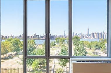 Large two Bedroom with stunning views of the Manhattan Skyline and East River State Park. Walls of windows bathe the apartment in sunlight. The large Living Room/Kitchen combo is great for entertaining. With room for seating and dining. The open chefs kitchen has stainless steel appliances, grey Caesar stone counter top and island, with green glass back splash. Both Bedrooms are large enough to serve as Masters. The river facing front bedroom has close access to the guest bath. The back bedroom is huge, with a large walk in closet and en suite with double vanity, soaking tub and separate shower. Building Amenities include a 24 Hr gym, common back yard, Concierge until 7 pm, and Cold storage for your Fresh Direct. The location cannot be beat with parks, restaurants, shopping, subway (L and G) as well as the East River Ferry very close by. Agents CYOF