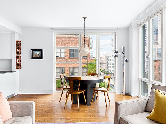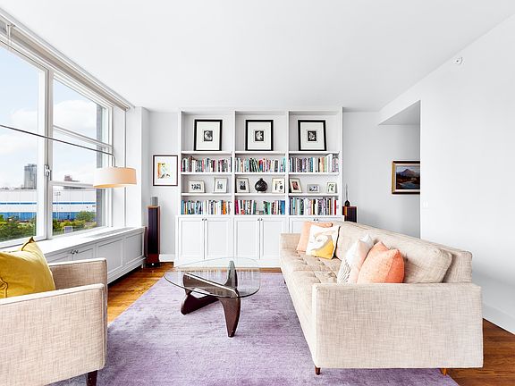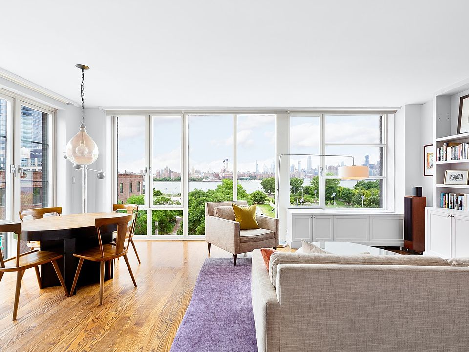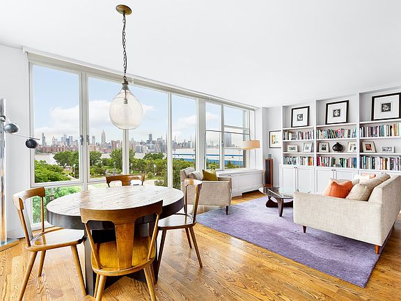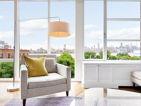 Residence 4D at 49 North 8th Street is a luxurious corner unit with astonishing unobstructed views of the East River and the Manhattan Skyline. - Deeded private parking space available for separate purchase. - The living/dining room has a wall of western and southern facing floor to ceiling windows. - Open kitchen features high end appliances from Sub-Zero, Bosch, and Thermador with a custom tile backsplash and an abundance of storage. - Built in bookshelves and storage, custom radiator covers, and oak flooring can be found throughout this luxury home. - Separate living area and sleeping quarters. - Primary Suite with walk-in closet, built in book shelf and dresser - En-suite bathroom is spa-like with a glass enclosed shower, oversized soaking tub, and double vanity. - Updated powder room with linen closet storage and a washer and dryer accessible in the hall. - The second and third bedrooms have oversized, bright windows with large closets and are perfect as guest rooms, a home office, or den. - The guest bathroom is luxurious with a soaking tub and custom subway tile. 49 North 8th Street is a luxury building featuring a fitness center and part-time doorman. The building is located in the heart of everything that makes Williamsburg one of the most desirable neighborhoods to live in. With the East River Park across the street and a never ending selection of shopping, dining and nightlife just blocks away, you will easily call 49 North 8th Street home. Transportation is very convenient with the ferry located nearby and the L train only a few short blocks away on Bedford Avenue. Citi bikes are abundantly available across the street and the Williamsburg Bridge is easily accessible to Manhattan.