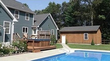 HOME SWEET HOME! Exposed post & beam custom built colonial located @ the end of a cul-de-sac.Very large rooms.1st floor master bedroom w/2 walk-in closets & full bath.1st floor laundry room.Family room w/gas fireplace.Den.Fully applianced eat-in kitchen.At the top of the staircase leading to the 2nd floor, you will enjoy a large sitting room,full bath & 2 large bedrooms.Outside enjoy a detached shop/garage.Inground pool w/covered sitting area,hot tub,fenced in backyard.Central air.Walk-out.