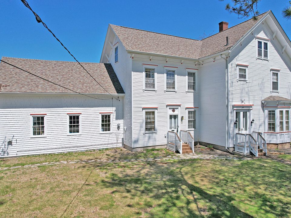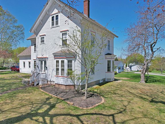 Elegant Two-Story Home with Tons of Room for Expansion For Sale! Picturesquely nestled on a flat 0.44-acre corner lot just moments from the Downeast Sunrise Trail, this 5BR/1.5BA, 2,406 sq.ft home radiates a distinctive aura of warmth with late 19th century architecture and a quiet community of friendly neighbors. Ideal for those seeking daily convenience, the home is only a short distance from the grocery store, hospital, historic library, post office, shops, courthouse, and banks. Professionally constructed by the same builder as the Clark Perry House, this residence is tailored to embrace the original antique touches of the 1870s, while harmoniously incorporating the desires of modern living. Fashioned with a classic floorplan, the interior features beautiful hardwood flooring (also beneath carpeting), thick crown moulding, bay windows, whimsical nooks/crannies, French doors, built-ins, lovely wainscoting, back staircase, pantry, spacious dining room with a pellet stove, living room with a large fireplace, and inviting foyer with high ceilings and stately main staircase. The charming retro kitchen features tons of storage, plenty of counter space, an electric cooktop, and double sinks. Boasting flex space possibilities, the oversized dry basement has built-in shelving, a workshop/tabletop area, and plenty of space for organized storage. Going further up, the unfinished 2nd-floor storage area and separate walk-up attic impress with opportunities for expansion. Other features include a laundry room with sink, custom weather-proofing inserts on most downstairs windows, newer propane boiler, and on-demand hot water. Call to secure a private tour!
