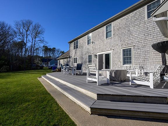 Gorgeous. In 20/21 most of house was renovated and upgraded. Sitting on nearly an acre of level land, with beautiful landscaping, is this attractive Cape home with 2 car garage. Property is part of the Beacon Point Assoc. with access to the beach. Stunning sunsets ..launch your kayak ..swim..build a sand castle..watch the boats. House features open 1st floor with wood floors. Entry has half bath & built in coat/shoe storage. This flows into kitchen, dining & living areas. Kitchen is a dream with huge pantry, center island, quartz counters, custom cabinets, paneled appliances, polished nickel knobs & light fixtures. Dining area with picture window beside kitchen. Living room has double sided fireplace that also opens in the home office/playroom. Living room has sliders to large deck and yard. 1st floor primary suite has 2 walk in closets, 1 w/laundry, and spacious bathroom with soaking tub, shower, tile floor, quartz counters. 2nd floor has 3 large bedrooms, 1 full bath, walk in attic.