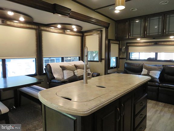 Schedule your showing today to see this well maintained 2017 Grand Devine Solitude 5th Wheeler on a nice, level, corner lot at the entrance to Riverbend RV park. Lot also has gravel area for parking, firepit and shed (golf cart does NOT convey). The RV's living/dining area features include a couch w/a queen size pull out bed, loveseat w/recliners that have heat and massage, TV, stereo system/DVD/Bluetooth, fireplace, table w/2 benches, pantry, full size refrigerator/freezer, full size under the cabinet microwave, stove, island w/under counter lights, plenty of cabinets/storage, counter space and drawers. The bathroom has a single sink, toilet, medicine cabinet and a large shower with seat. The primary bedroom has a king size bed with storage, large closet, closet for washer/dryer (not included), TV and dresser. The secondary bedroom has a full size pull out couch, storage/clothes cabinet & shelf for a TV (not included). Additionally, there is a large loft/bunk area w/TV hook up. Riverbend RV Park has private Potomac River access for boating, fishing & swimming. Riverbend RV Park's yearly membership includes water, sewer, electric, trash and the park amenities such as pools, putt putt, basketball court, tennis court, holiday fireworks for July 4th, car show, carnival, restaurant, playground, ball field and much more. Riverbend RV Park is located close to shopping, I81 & The C&O Canal for hiking & biking. Own this getaway in as little as 3 weeks. Call today before it's gone! **Gated community-pass required for entry. **Riverbend sales are SOLD "AS IS", CASH only and seasonal.** (Direct TV and Frontier Internet available with service install/hookup).