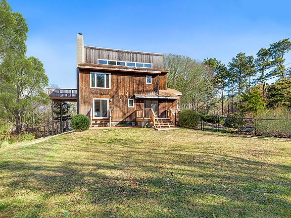 This artsy house is located in the Town of Southampton and is perfectly positioned between the North and South Fork for easy access to everything. This home boasts 3 bedrooms, 2.5 bathrooms and a den on the first floor. On the second floor you will find, an open concept kitchen, dining room and living room complete with a wood burning stove and recently renovated second floor decks. This home also has an attached two car garage with access into the partially finished basement. Outdoors you will find lush plantings that are set up for 3 season gardening as well as a delightfully tiered vegetable garden. There is also plenty of room for a pool on this .75+/- acre property.