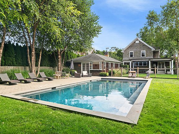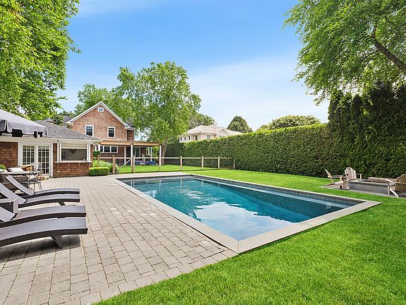 Your summer getaway awaits at this quintessential Southampton Village home conveniently located within minutes of Southampton Main Street, pristine ocean beaches, and the Long Island Railroad. Comfortable, charming and stylish, this home features 6 generous bedrooms and 5 & 1/2 baths on 3 finished levels, along with a newly renovated pool house. The private and serene backyard features multiple seating and dining areas, a heated gunite pool, and a wood burning fire pit. Upon entering through the covered front porch, the inviting first floor welcomes you into a cozy living room with fireplace, home office, den, formal dining room, gourmet kitchen with marble countertops and high-end appliances, and a separate breakfast room overlooking the picturesque backyard. The 2nd floor, anchored by a light-filled primary suite with marble bath, features 4 bedrooms, three full bathrooms and laundry. The finished lower level features a delightful playroom and a TV room, along with 2 additional bedrooms and a full bath. The manicured outdoor space is ideal for summer entertaining. Enjoy grilling or lounging under the pergola, play lawn games on plush grass, or go for a swim in the heated gunite pool. After a dip, relax and watch television in the separate and stylish pool house with a daybed, television, kitchenette, washer/dryer and full bath. All surrounded by mature landscaping ensuring privacy, and beautiful night lighting- your own paradise in an ideal Southampton Village location!