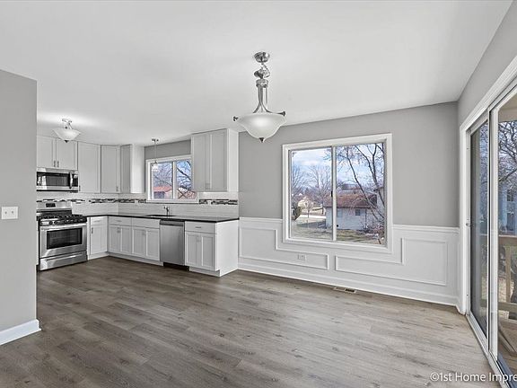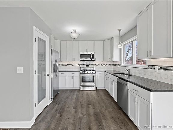 PIN IT TO THE TOP!!! This oversized home has been COMPLETELY REMODELED from top to bottom including all new drywall, insulation, updated plumbing and electrical and so much more-- it's LIKE NEW CONSTRUCTION! The layout is perfect with 4 BEDROOMS, 3 FULL BATHROOMS and 2 FAMILY ROOMS. Main bedroom has it's own private full bathroom. This home boasts today's most popular upscale quality finishes and all the bells and whistles! You will want to show off this stunning OPEN-CONCEPT MODERN KITCHEN w/ beautiful black pearl GRANITE COUNTERTOPS, white custom soft close cabinets, glass door pantry, full stainless steel appliance package and a custom backsplash. Featuring 3 GORGEOUS BATHROOMS with beautiful custom tile work and all new fixtures. Upgraded trim package with white 6-panel doors and trim throughout. High end VINYL PLANK FLOORING throughout with brand new carpet in the main level bedrooms. The FULL FINISHED WALK OUT BASEMENT creates the perfect space with a huge family room w/cozy fireplace, large bedroom, full bathroom w/custom tilework and a separate laundry room. Custom light fixtures throughout and recessed lighting to show off this stunning home. Easy to entertain and enjoy the outdoors with sliding glass doors leading to a balcony/patio on each level of the home. MAINTENANCE-FREE HOME with energy-efficient insulated windows and estate like columns for amazing curb appeal. Nothing to do here but relax in the fully fenced private backyard! Convenient ATTACHED GARAGE. New furnace, a/c and water heater ! Taxes will be lower with a homeowner exemption!! Easy access for commuters to public transportation, major highways, dining, shopping and schools. You will appreciate the quality of the work that was done in this home. Be prepared to fall in love with your dream home - book a showing today!!!