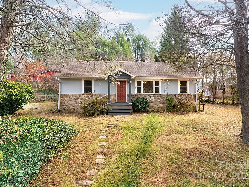 Charming stone and stucco cottage on an expansive lot in desirable Haw Creek. This 3-bedroom, 2.5-bathroom home is perfectly situated on a 0.56-acre corner lot. Inside, you’ll find a surprisingly spacious and flexible floor plan highlighted by lovely hardwood flooring. The main level is designed for easy living, featuring an open-concept arrangement for the living, dining, and kitchen areas, along with two bedrooms and a hall bath. Upstairs, the large primary bedroom offers a private retreat with an ensuite bathroom and walk-in closet. Gather around the wood-burning fireplace in the cozy family room, which also features a convenient half bath and storage room. Laundry room/mudroom off kitchen. With plenty of storage throughout, a carport, and an attached storage shed, this home effortlessly blends comfort and practicality. Recent updates include a freshly painted interior and all-new plumbing for peace of mind. And all of this is just moments from Asheville’s renowned shopping, dining, and the Blue Ridge Parkway.