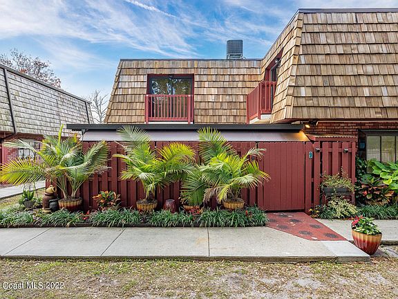 Fantastic location in West Melbourne! Walking distance to restaurants, 5 miles to the beaches, and the Melbourne Mall in our backyard.It does not get much more convenient than this 2BR/2.5BA Courtyard Townhome. This unit has been beautifully & creatively updated with a newer custom kitchen w/ under cabinet lighting, granite counters, SS appliances & a lazy susan. The ceilings downstairs are finished in plank Armstrong wood laminate, and the floors are vinyl plank & tile. The updated half bath downstairs is so cool the way it is finished. The floor plan consists of downstairs living spaces, kitchen, and half bath. The upstairs has 2 bedrooms with ensuite bathrooms & walk-in closets. There is crown molding & wainscotting on the staircase, and the walls are retextured. One of the bathrooms is almost finished w/ a beautiful renovation.The HVAC is approx. 2 yrs old, and the H/W heater is a 2021. The outside courtyard area has been newly landscaped. The screened porch is nice and spacious which extends your living space. This unit is tucked away with privacy and ready for a new owner to come in and make it their own.