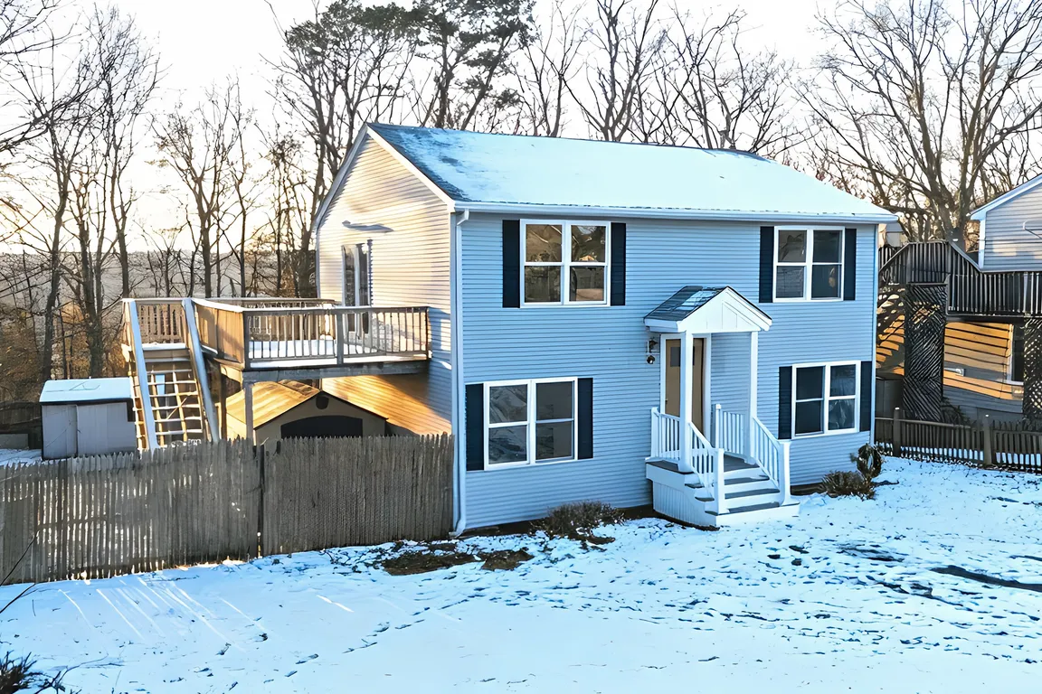 Open-concept raised ranchLot surrounded by natureOutdoor shower