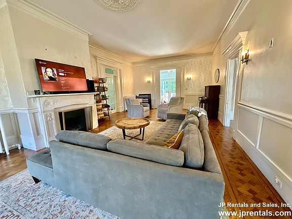 Available September 1 - Available for the first time in 5 years, this Jamaica Pondside mansion offers the opportunity to live in a one of a kind apartment. Spread out over 2 floors of living space and 3000+ sq ft are 4 bedrooms and 3.5 baths. Through the front door you enter into a grandiose foyer with a massive living room and separate sunroom to your left, and a formal dining room with gas fireplace to your right. In the rear of the first floor is an eat in kitchen with two pantries, dishwasher, and tons of cabinet space. There is a bedroom with a private full bath off of the mud room, and a back entrance from the massive private deck and back yard. Next to the wide staircase up to the second floor is a large half bath as well. The second floor features 2 very large bedrooms and a common bath with dual vanity, stand up shower, and huge jacuzzi tub. There is also a primary bedroom with two massive closets and a beautiful en suite bath. There is additional storage in the basement and washer/dryer hookups in the unit (machines in the unit are new and can be purchased off the current tenant). The home has central AC as well as two private off street parking spots behind the building. The location is unbeatable with views of Jamaica Pond from your front yard and all the amenities of Centre St only a block away. Don't pass up this rare opportunity to live in one of the most stunning properties in Boston. Call or email us today to schedule a tour. FIRST, LAST, BROKER FEE DUE W/LEASE THROUGH 5/31/26 OR 5/31/27. CATS OKAY & DOGS OKAY W/BREED AND SIZE RESTRICTIONS