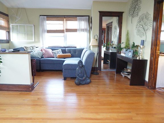 New Photos Must See 5 windows and skylight in the HUGE lining room! 14 x 12ft living room separated by half wall. Tenants have a habit of staying for 10 years! get in hear quick. NO PETS 1 private balcony in back and one shared balcony in front! great spot. free on st parking 3 Units in building. 3rd floors top unit. 4 closets and mud room!