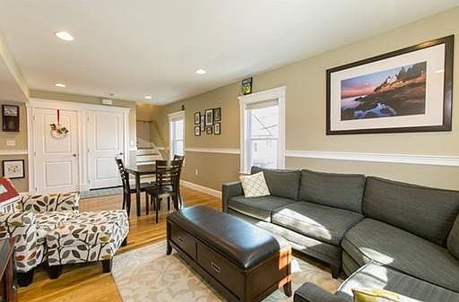 This 2-level, 2 bd/2ba unit near Magoun/Ball Sqs is a short walk to both Porter & Davis Sqs. You enter this 2nd flr unit directly into the DR/LR. The room layout is a practical 'L' shape w/the kitchen to the right of the entry door. The kitchen incl: breakfast bar island w/storage, SS appliances incl wine cooler, & pantry. Off of the kitchen is a laundry closet; BA w/tiled shower; bdrm w/closet; and exit to prch, fenced backyrd, & storage space in the bsmnt--all excl. to this unit. The top flr is a master suite w/skylights, walk-in closet, & en suite tiled BA. There is addt'l storage space in the eaves & through a small door in the walk-in closet. The unit has AC and wood floors throughout. The entire driveway, to the right of the condo, belongs solely to this unit offering 3 pkg spots. The Street Smart Walk Score® of 82 is indicative of its proximity to restaurants, shops, theaters, parks, nightlife, & the Community Bike Path.