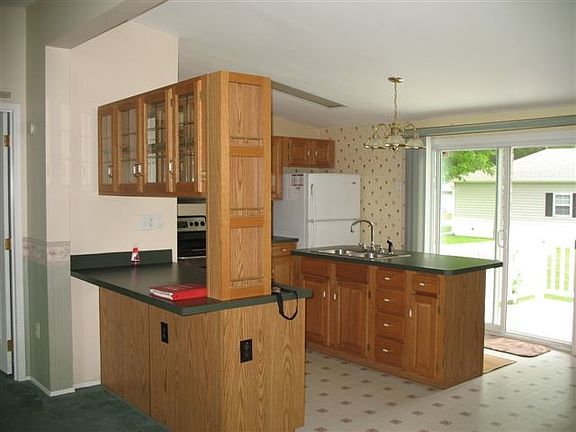 Well maintained, bright and sunny double wide in age restricted community. Upgraded with sheet rock walls, extra insulation, generator hook-up and large storage shed. Easy to view!