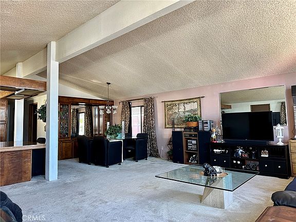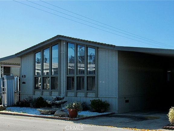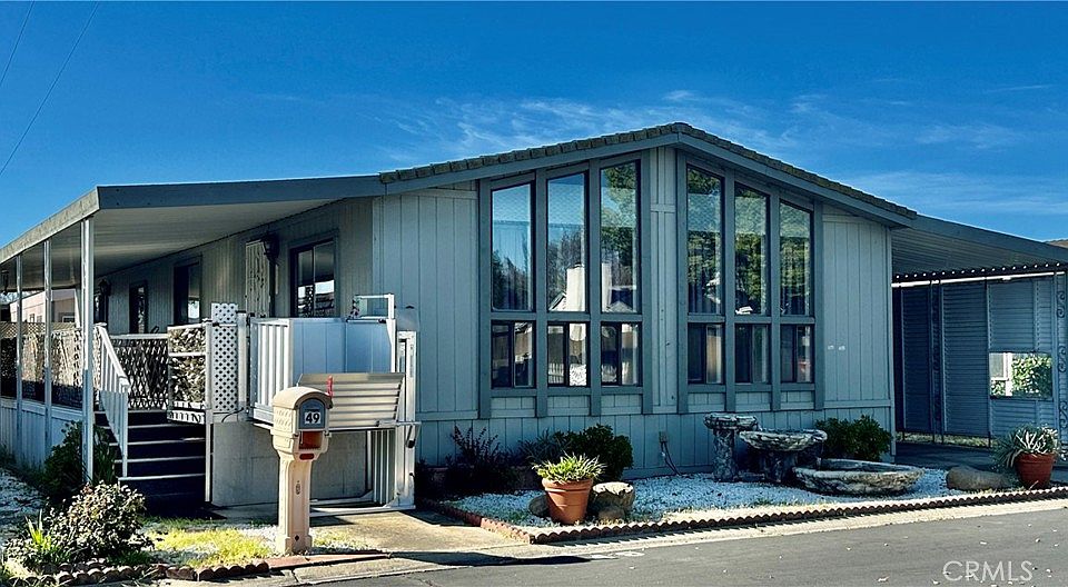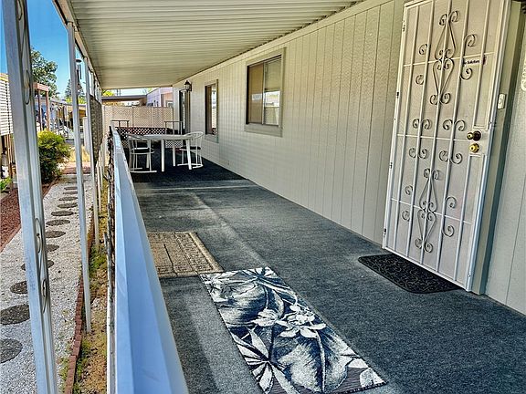 Beautifully maintained double-wide Manufactured Home in the highly desirable Rancho Grande Mobile Home Park. Real wood cabinets and built-ins throughout. Open floor plan has high ceilings, floor length windows and lots of light. Wet bar, breakfast bar and built-ins are specially made for the home. Bedrooms are large, especially the primary bedroom with its large bath and soaking tub. Utility room has real wood cabinets and built-in desk. Covered front deck with lift runs the length of the home; the carport fits up to 3 cars; and there's a fountain in front. Home is at the back of the park for a quiet, secluded-feeling location. This All-Age park has lovely grounds, sparkling pool, dog park, community club house, communal library, and large capacity washer & dryer + wifi in on-site laundry room. Rancho Del Rey Golf Course is within walking distance. Playground, sports court and outdoor gym equipment are currently being added. Monthly HOA dues include these amenities plus water, sewer and garbage. Buyers need to be approved by the park. Refrigerator, washer and dryer can convey with the right offer. Home is being sold AS-IS.