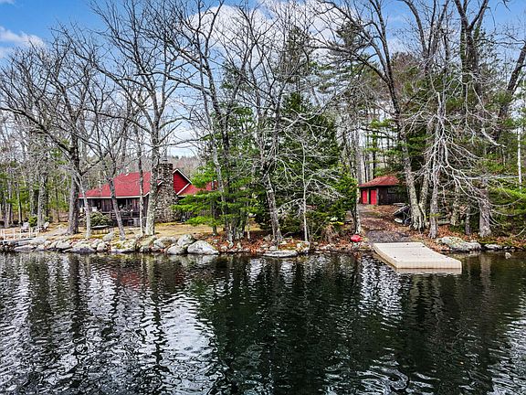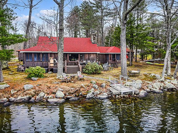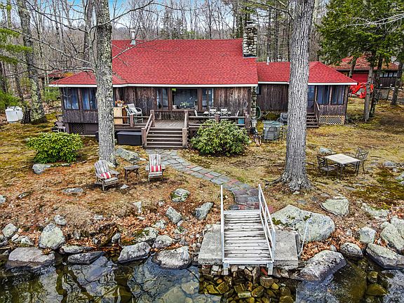This is a once in a lifetime opportunity to buy a classic Maine waterfront compound. This spectacular property is set on the Western shore of McGrath Pond in Belgrade. You will enjoy plenty of privacy with 222 feet of flat frontage and 2.24 acres. The compound includes a large 3 season lodge set about 30 feet from the water's edge and a separate cabin situated at the back of the property which is currently used as guest quarters and as a rental. In addition, there is a small building with a sauna, a separate laundry house with storage, a two-car detached garage, two small outbuildings near the water, and a boat launch. The Lodge features a great room with a vaulted wooden ceiling, hardwood floors, pine paneling and a gorgeous hearth with working fireplace. The dining area can comfortably seat 10-12 people. There is a gracious mud room, a cozy bar area, a fully appliance kitchen, a pantry, two full bathrooms and three bedrooms. Enjoy your summer evenings listening to the loons on the deck, sitting by the fire pit or playing games on one of the two screened porches. Don't miss out.... properties like this don't come along very often!
