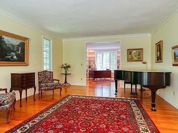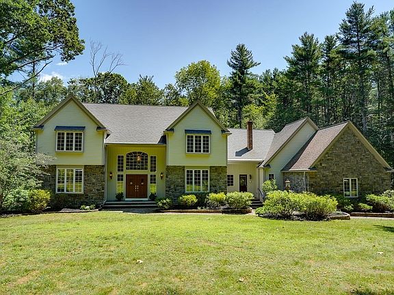 Unique offering.... Impressive family home with home office wing with separate entrance complementing this wonderfully appointed 6100 sq ft home. Sited on 2 acres of woodlands on quiet country cul de sac. Enter into the 2 story foyer which leads to the elegant living room flowing into library while the beamed dining room has butler's pantry leading to large kitchen with center island and dining area. The fireplace dominates the expansive family room. The home office wing complete with reception room and two office spaces and 1/2 bath. The turned staircase leads to the generous primary bedroom with fireplace and spacious spa like bath. There is one other ensuite bedroom and two others share another bath. A large vaulted ceiling bonus room and exercise room complete the 2nd level. The lower level adds a large playroom also featuring a fireplace. This elegant and functional home offers a 4 car garage, deck. and many other amenities. Welcome to 49 Red Pine Drive!!!!