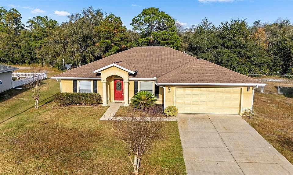 Beautiful 3/2/2 PLUS OFFICE OR 4TH BEDROOM! Oversized FENCED lot (.30 acre) with privacy, no neighbors behind, and a great view of the Greenway! Enjoy seeing deer and owls from your back yard! 2025 AC. Spacious OPEN FLOOR PLAN home with 1818 ft living space! NO CARPET. Large great room has vaulted ceilings and triple sliders to the lanai. Kitchen has a breakfast bar, stainless steel appliances, pantry, plenty of counters/cabinets, and separate dining room. Split bedroom plan. Primary suite has HUGE walk-in closet and en suite with dual sinks and linen closet. Inside laundry room includes washer/dryer. Two car garage has garage door opener. Covered lanai plus oversized patio gives you plenty of space for outdoor living and enjoying the views from your back yard. Convenient location to shopping, dining, golf course, and parks. The Greenway has great walking/biking trails and you're just 9 miles to downtown Ocala and 5 miles to Silver Springs State Park! SELLER WILL REPLACE ROOF WITH ACCEPTABLE OFFER!