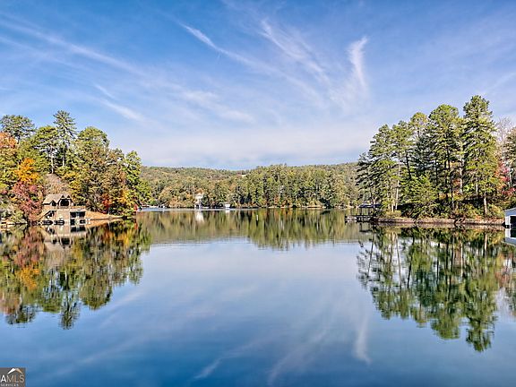 A FEE SIMPLE, 2.4+/- acre architectural masterpiece on the shores of Lake Rabun, this striking 4+ bedroom, 3.2 bathroom contemporary retreat embodies glass, light, and modern design in perfect harmony with its natural surroundings. Designed to maximize panoramic views of the lake and lush organic landscaping, this four-story home is a rare blend of artistry and livability. From the moment you arrive, you're greeted by soaring glass walls that flood every level with natural light and offer breathtaking vistas. Exposed timber beams, sleek lines, and custom finishes define the home's contemporary aesthetic, creating a sanctuary that feels both refined and deeply connected to nature. The entry level welcomes you with a spacious ensuite bedroom, a sunroom that can double as a guest suite, and a cozy TV nook perfect for relaxation. A hallway overlooks the grand living area below, framing the dramatic vertical space and forest views. The heart of the home is an open-concept living and dining area wrapped in floor-to-ceiling windows. A stunning wood-burning fireplace anchors the space, complemented by a dedicated art wall for displaying fine collections. The chef's kitchen is its own showpiece, featuring double Sub-Zero refrigerator/freezers, Thermador appliances, sleek cabinetry, and a generous island and breakfast nook. French doors open to an alfresco porch that invites year-round outdoor dining and entertaining. The primary suite occupies the entire terrace level---your private retreat with a sitting area, spa-inspired bathroom, built-ins throughout, a walk-in closet, and a secondary bedroom ideal for a nursery, study, or fitness room. Two separate water closets and a private porch overlooking the lake complete this serene space. Last but not least, the top floor offers a guest suite with ensuite bath and two impressive office spaces, ideal for remote work, creative pursuits, or reading alcoves---all with inspiring lake views. Outside, the two-story, two-stall boathouse is the ultimate expression of lakeside luxury, designed with contemporary flair and generous space for lounging, entertaining, and launching your water adventures. Finally, a two-car garage provides ample storage and convenience. 49 Richmond Lane is a rare fee simple architectural jewel: a four-story modern masterpiece on 2.4+/- acres that captures the essence of mountain-lake living through design, proportion, and light. Do not miss this one-of-a-kind opportunity for the ultimate in luxury and uniqueness on one of Georgia's most coveted lakefronts!