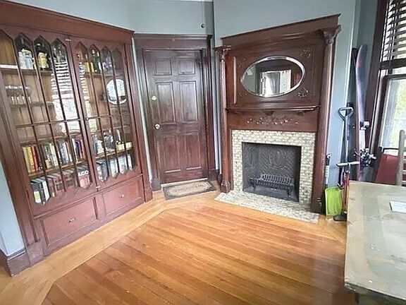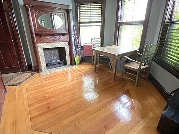 Bright, Spacious, Professional Friendly, 3BR/1BA steps from the Warren St Green Line! This sun-filled offering features high ceilings, an open floor plan, hardwood floors throughout, a spacious living room, a separate dining room with decorative fireplace, three large, equal bedrooms, a modern, fully applianced kitchen with dishwasher, disposal and microwave, a modern bath, laundry in unit and private front porch!