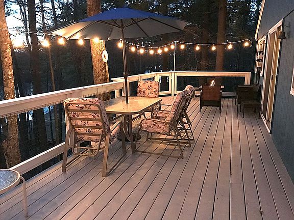 If you want privacy and the convenience of a large sandy beach this is the place! When this property came on the market we immediately knew we had to own it. It is very private - you can't see any neighboring houses. Three private bedrooms and a large open concept living area with 1-1/2 baths all on one level opening to a huge (400 square foot) rear deck overlooking the private wooded back yard, more than 100' of shoreline and a private dock. Our "unfinished basement" adds another 1,000 square feet of guest friendly space. Here we have our laundry area, a table and 4 bistro chairs for board games or puzzles, an extensive assortment of DVDs, VHS tapes, board games and puzzles, a 55" Roku TV with a DVD/VCR player, ping pong, shuffleboard, practice golf putting, etc. Best of all, the adjoining lot is "Beach #1", owned and maintained by Lake Arrowhead Community Association. This beach is more than 100' wide with a cordoned off area providing safe swimming for children, picnic tables and toilet facilities. It is not open to the general public, just homeowners within the Lake Arrowhead community and their guests. This is a fully furnished lakefront vacation rental available on a weekly rental basis ($1700/week from 9/3/22 through 3/25/23), or $6,000 per month. Water and utilities are included. This is a non-smoking no pets rental. To see complete availability please visit our web site: CampGeorge.net. Our web site provides a great deal of information that could not be fit on this Zillow site such as property tour videos, 100% of our guest ratings, and information about the club houses offering heated indoor swimming pools, a fitness center, etc.