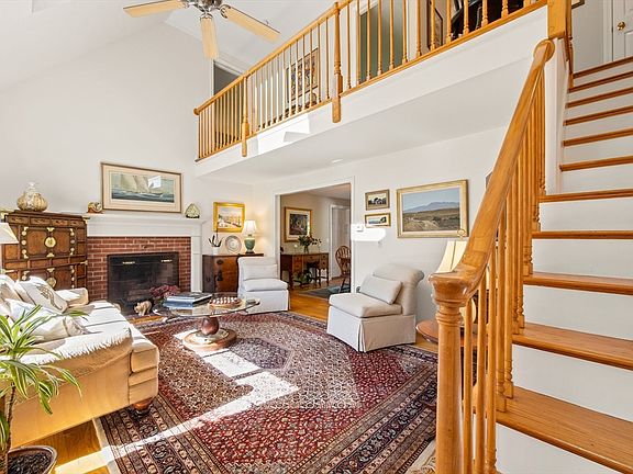 This elegant 3 bed/3 bath Cape spans 1,763 sf and sits on a professionally landscaped .4 acre lot. Step inside to a warm and inviting living room with cathedral ceiling, balcony and skylight, with a bright/airy atmosphere. There are gleaming hardwood floors, 3 renovated tile and marble bathrooms, new interior and exterior paint, some exterior shingling and new windows, etc.. The dining area opens out to a large deck and to the beautiful perennial gardens. The kitchen has lots of counter space, oak cabinetry and a peninsula for dining or work. A den, full bath and laundry complete the 1st floor. 3 bedrooms on the 2nd floor open onto a balcony overlooking the living room. The primary bedroom has hardwood, a skylight and its own tiled bath. The other 2 bedrooms share a full bath, have carpet, large closets and expansive windows. The semi-annual HOA dues is $350.00 which covers road maintenance and landscaping of the entrance. Seller is willing to provide buyer with closing concession.