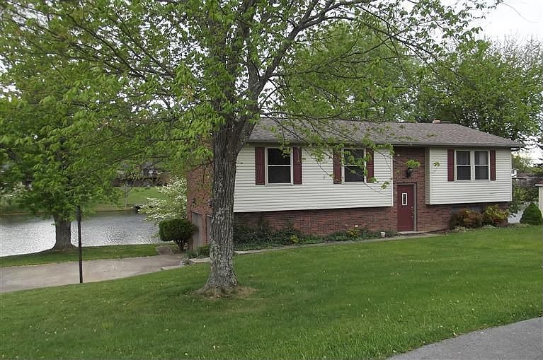 Very nice 3br/2bth split level in Phase 1 of Cardinal Heights Subdivision, Corbin. Sits on the banks of the huge, beautiful pond. Well maintained in a residential neighborhood. New updates in June: new deck door, tile in kitchen, and both bathrooms, new vanity and comode in hall bath, new lighting fixtures in both bathrooms, all bedrooms freshly painted. Insulated windows are 6-7 years old, roof around 5 years old, basement has been treated by Magna Dry, and heating/ac unit was replaced in the fall of 2011. Main level: kitchen with breakfast bar (pull out pantry in cabinet next to refrigerator), living room, dining area, 3 bedrooms, and 2 full baths. Full basement has family room, bonus room, wet bar area, utility room, and 543sf 2 car garage. A nice, attractive storage shed is in back yard. Close to restaurants and shopping. KU Utilities.