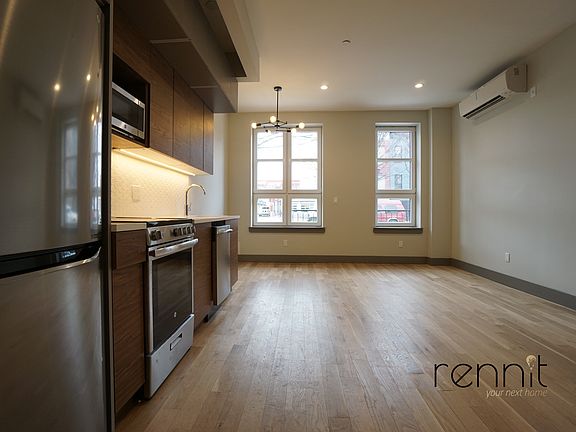 Living room with HUGE windows, washer dryer in unit, direct backyard access, large duplex apartment with finished basement space and 2 baths in brand new building with shared backyard / garden, rooftop access and laundry! Bed-Stuy Brooklyn! A Express and C Trains just 2 short blocks via Utica or Ralph Ave Station. 3, 4, 5 Express Trains 10 minute walk to Utica Avenue in Crown Heights. Large living room with windows allowing great natural light in, kitchen with stainless steal appliances including dishwasher, 2 spacious bedrooms in the upstairs level, each with their own direct access to the backyard, great sized closets and oversized windows allowing tons of natural lights, 1 full bathroom with tub and shower in the upstairs level, 2nd full bathroom in the lower level with standing shower only, 3rd built out bedroom in the lower level, + a large open finished basement space with windows, basement has its own private entrance and bathroom, in unit washer dryer, warm and inviting vibes, 2 full bathrooms, high ceilings, tall ceilings, hardwood floors, central air and heat, Dishwasher, Microwave, Guarantors Accepted, Pets Allowed * Upon Approval, Laundry in the Building, Outdoor Space, Backyard, Rooftop / Roof Deck, No Brokers fee, Showing by appointment only.