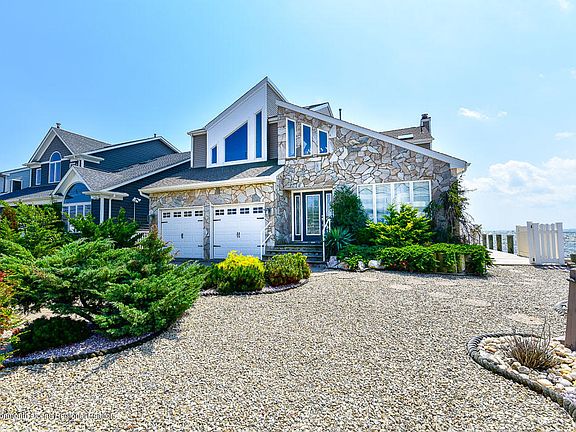 LOCATION, LOCATION, LOCATION!!! This Freshly Renovated, 3-story Bayfront home, nestled in the middle of a protected bird sanctuary, has views spanning the entire Barnegat Bay all the way to the Seaside Bridge! The home has direct bay access and is equipped with a 112ft long dock and an extra second driveway for winter boat storage. There is also an undeveloped beach lot to the right of the house for even more privacy and the perfect ambiance of breaking waves. The exterior is equipped with over 160ft of newer vinyl bulkhead, newer roof and new vinyl siding. Downstairs has a completely open layout with a new custom kitchen and an extra large island with farmhouse sink. There are 2 master suites with walk-in closets, private decks, and custom marble showers with frameless glass doors.