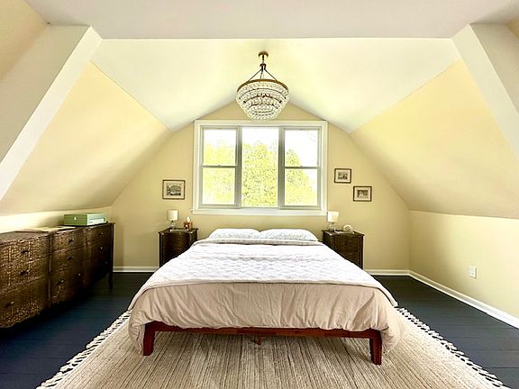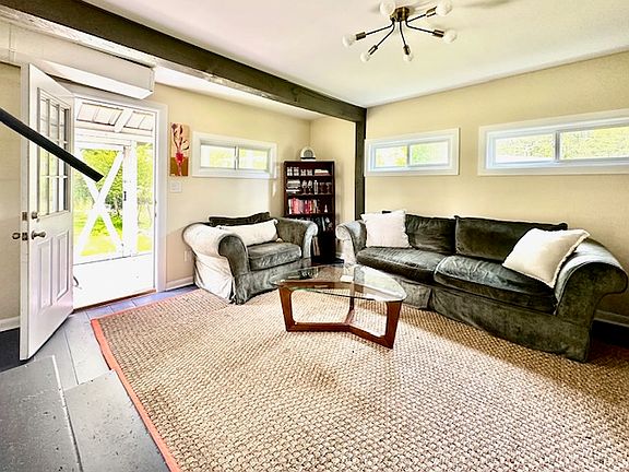 Beautifully reno'd one bedroom cottage in Woodstock, partially or fully furnished, with a large yard and screened in porch. Downstairs there's a galley kitchen with a full-size fridge and gas range, a comfortable living room and dining area, and a delightful screened-in porch with wicker furniture leading to the yard. Upstairs there's a huge bedroom with vaulted ceiling, lots of natural light, and mountain views. The king-sized bed sits under a gorgeous chandelier. The designer bathroom with claw foot tub and hand shower, also features an inspiring wall mural done by a local artist. And if that's not enough, you are welcome to garden in the gigantic back yard! Brand new Heat/AC mini splits are upstairs and down. Laundromat is close by, along with cafes, shopping, and the bus to NYC. It's a perfect location! Off-street parking in our shared driveway. Mowing, snow removal, garbage, water, and internet are included. Tenant pays electricity and propane for hot water and cooking. Agents collect your own fee. One year lease. No smoking. Renter is responsible for electricity, internet.