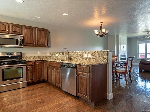 Must see custom townhouse with three bedrooms and three full baths. This former model unit features wide plank cherry hardwood floors on the main level. Stainless Steel appliances in the large kitchen. Granite counters with breakfast bar for seating. Main level and 2nd floor have terraces with picturesque mountain views. Walkout patio on lower level also features amazing views. Dual master suites on the 2nd level and in the basement. Basement level also offers a bonus space. Single car garage with space for storage. Neighborhood features a club house and pool. Grocery, drug store, barber shop, restaurants and shops are all within a half mile radius.