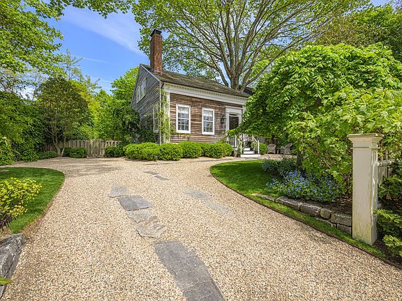 On a very desirable street in the heart of Sag Harbor Village this historic Greek Revival home built in 1834 has been brilliantly renovated by Heiberg Cummings Design team.Creating an inspired synthesis of old and new. The renovation retained and restored all of the home's original architectural details while adding comprehensive 21st century amenities. Situated on .24+/- acre - a large lot for the village - the property feels even bigger and includes a legal cottage and a grandfathered shed. The 1,950+/- sq. ft. home has two bedrooms and two full baths. On the first floor the living room includes a wood-burning fireplace and built-in recessed shelving. The dining room is in the center of this floor, and the kitchen with Bertazzoni range is to one side. In the rear of the home is a spacious family room with exposed original beams and ceiling, a wood-burning stove and large windows on two sides. Upstairs is the master bedroom with fireplace, beamed ceiling, window banquette and built-in storage original to the house. A full bath and second bedroom complete this level. The property has been beautifully transformed by magnificent specimen trees with all new landscaping both in the front of the house and the surrounding the back yard. Perfect for entertaining and private dining as the lights twinkle above. A flowering cherry tree, a fire pit and heated gunite pool with benches, jets and an automatic cover create a sanctuary for peaceful days and evenings in this lovely manicured backyard . A secret path leads to an outdoor living room and dining area. There is a legal pre-existing, nonconforming cottage which contains a stunning living room, kitchenette and bath. A separate sitting area with fountain also leads to the cottage. Conveniently located a block to the marina and a few blocks in the other direction to restaurants and shops.