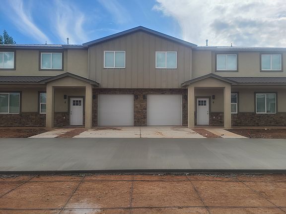 4 bed 2 1/2 bath townhome for rent in Enterprise, Utah 84725. This unit has been upgraded from the other units in the subdivision to include a spacious shed in the backyard, turf in the backyard, additional bathroom cabinets, storage hooks, and more. Newly built in 2023, this home offers granite countertops and new stainless steel appliances. All appliances, including washer and dryer are in unit. With a spacious primary bedroom, large bedroom closets, and storage spaces, this house has ample space. Make yourself at home with a private, fenced in backyard, a one car garage with two other parking spaces, and additional guest parking nearby. Pet rent is negotiable. Enjoy the comforts of living in a safe and quiet small town with a commute of less than 50 minutes to both St. George and Cedar City. Within walking distance to the grocery store, community park, schools, and more, you won't want to miss the opportunity to check out this fantastic house for rent! Renter is responsible for all utilities including: Enterprise city (power, water, sewer and garbage), natural gas (through Enbridge Gas formerly known as Dominion Energy) and Internet (fiber optics is available). Owner will be responsible for the HOA payment which includes front yard maintenance and snow removal. Lease duration is 1 Year There is 3 parking spots (inside garage, driveway and one additional spot on the side of the unit. Guest parking is available along the road by the entrance to the development. No smoking or vaping in the building. Tenet responsibilities: Smoke detector batteries, air filter replacement (monthly), light bulbs, and pest control.