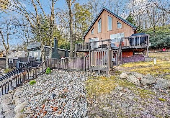DONT MISS THIS OPPORTUNITY TO HAVE AN AFFORDABLE ALL SEASON TRUE LAKEVIEW HOME -BOATING ,SWIMMING,,JET SKIS , SNOW SKIING, SPLIT ROCK GOLF COURSE, JACK FROST NATIONAL COURSE, MOVIE THEATRE, GAME ROOM, AND WATER PARK., YOU WILL NEVER AGAIN HEAR THERE IS NOTHING TO DO ! LARGE DECK THAT SITS UP HIGH SO YOU WILL NOT HAVE YOUR VIEW OF THE LAKE BLOCKED BY OTHER HOMES. OPEN CONCEPT.. VAULTED BEAMED CEILINGS IN LIVING AND DINING-GAS STONE FIRPLACE VISIBLE FROM LIVING AND DINING -3 BEDS 2 FULL BATHS AND COZY LOFT. NEWER 40 YEAR ROOF , NEWER WINDOWSS, GRANITE COUNTER TOPS , SS APPLIANCE AND NEW DRYER. --FULLY FURNISHED- .INCLUDES 2 KAYAKS AND CANOE ,CURRENT OWNERS ARE USING FOR STR AND PERSONAL USE-COME SEE THIS IMMACULATE MOVE IN READY ALL SEASONS CHALET -