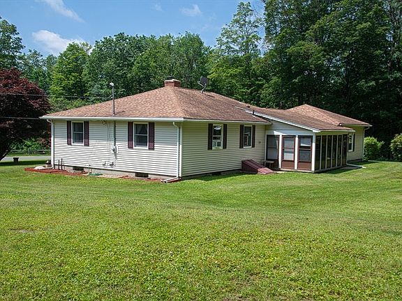 Lovely hip-roofed mid-century ranch in mint condition! This impeccably maintained one owner ranch sits on 2.5 acres, and offers a well-laid out floor plan with oak and tile floors, spacious living room with a fireplace, kitchen with updated appliances including a brand new wall oven, and lots of counter & cabinet space opening to the inviting dining area. Many updates including Anderson windows throughout the house in 2003, newer boiler, oil tank, and well pump. The screened porch at the back of the house can be accessed from the garage or through the slider in the third bedroom. Very well insulated with 10" of blown-in cellulose in attic and Tyvek and rigid board under the siding. Outside, the expansive yard offers plenty of garden areas along with a handy storage shed. Near DAR State Forest, and 20 mins to Northampton.** Offer Deadline is Wed July 2nd at noon.